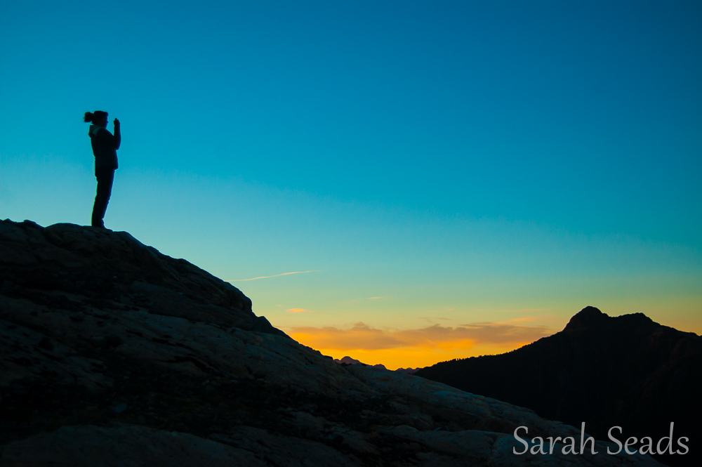 After dropping our gear, we all ran for the alpine lakes that had been calling our names all day. Pristine, aqua water with an infinity pool waterfall disappearing over the edge? Yes please. Dinner around the stoves, another amazing sunset, sweet mountain dreams sleeping side by side with my mountain buddy, Gen.