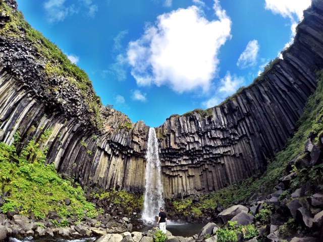 | This pretty much sums it up. If you like the nature, you should just go. Look how at peace Ms Nicole is here at Skogafoss. |